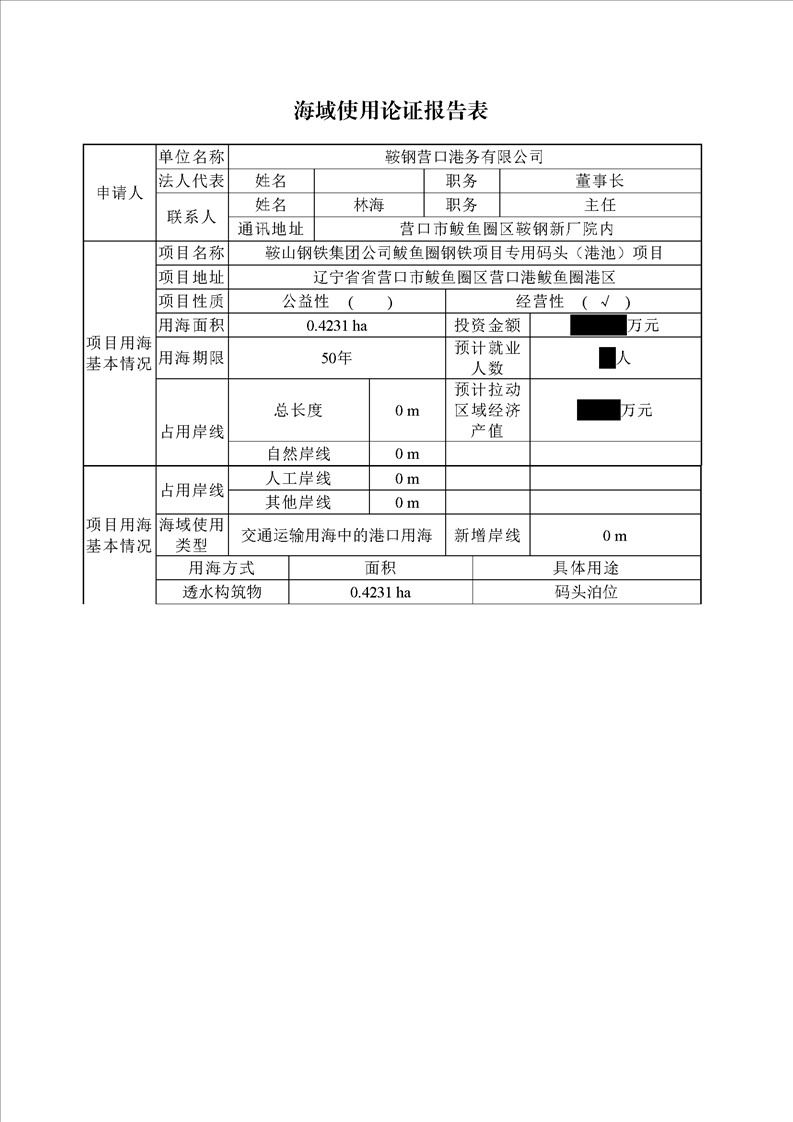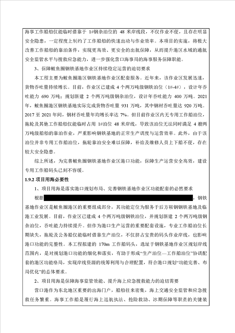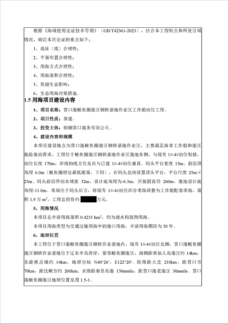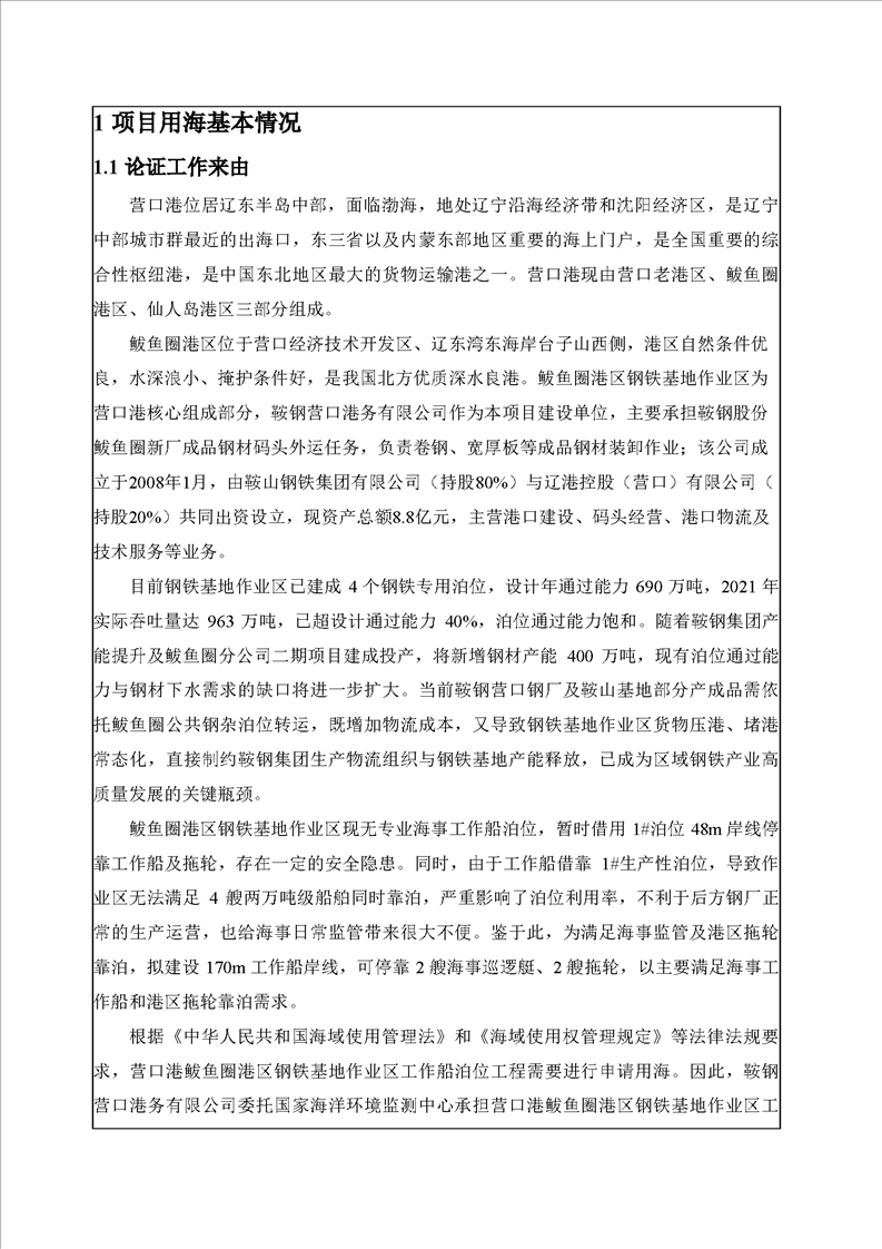附件:营口港鲅鱼圈港区钢铁基地作业区工作船泊位工程海域使用论证报告表