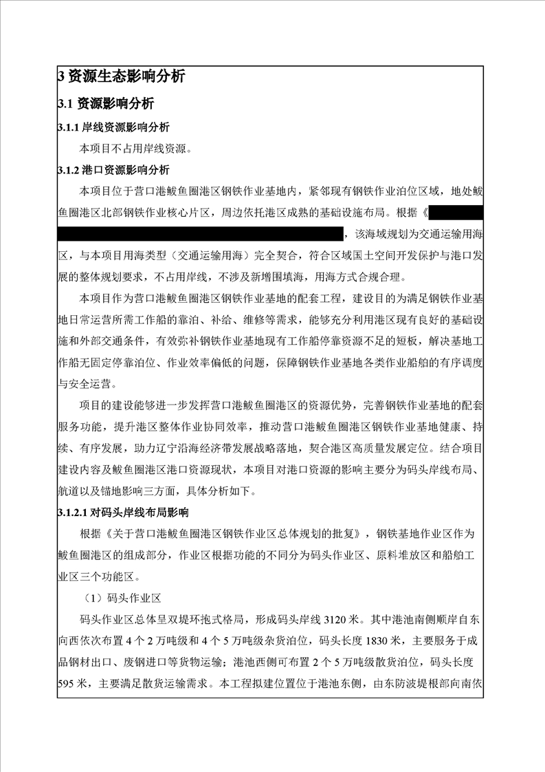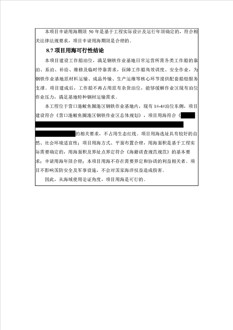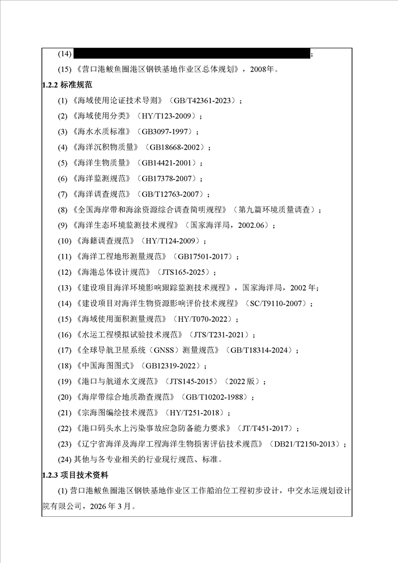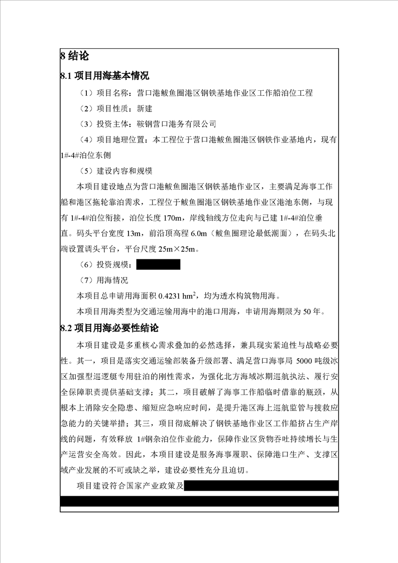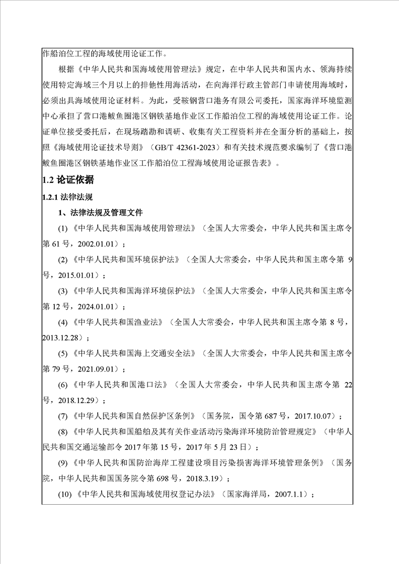 附件:营口港鲅鱼圈港区钢铁基地作业区工作船泊位工程海域使用论证报告表