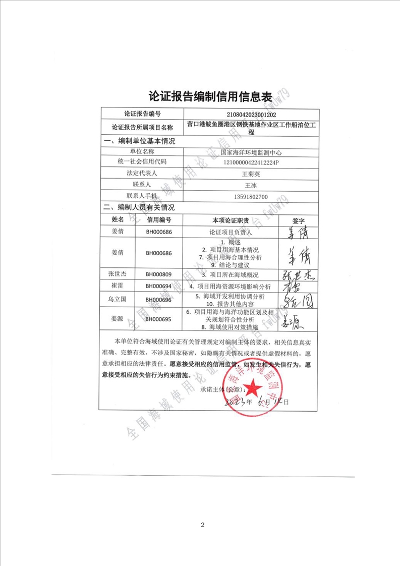 海域使用论证报告书编制单位:国家海洋环境监测中心报告文本:见附件(报告中涉及的国家秘密、商业秘密或者个人隐私等信息已删除或模糊处理)