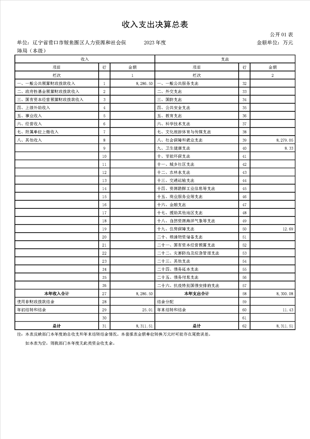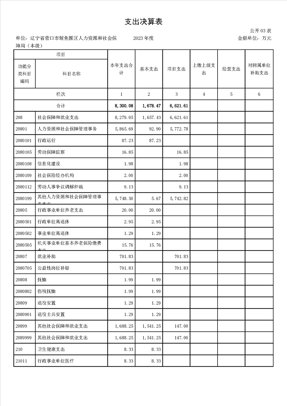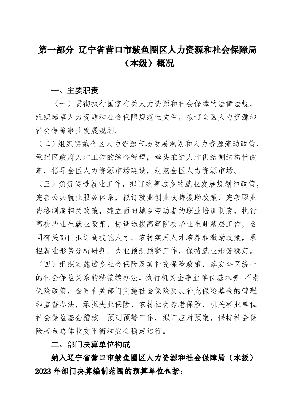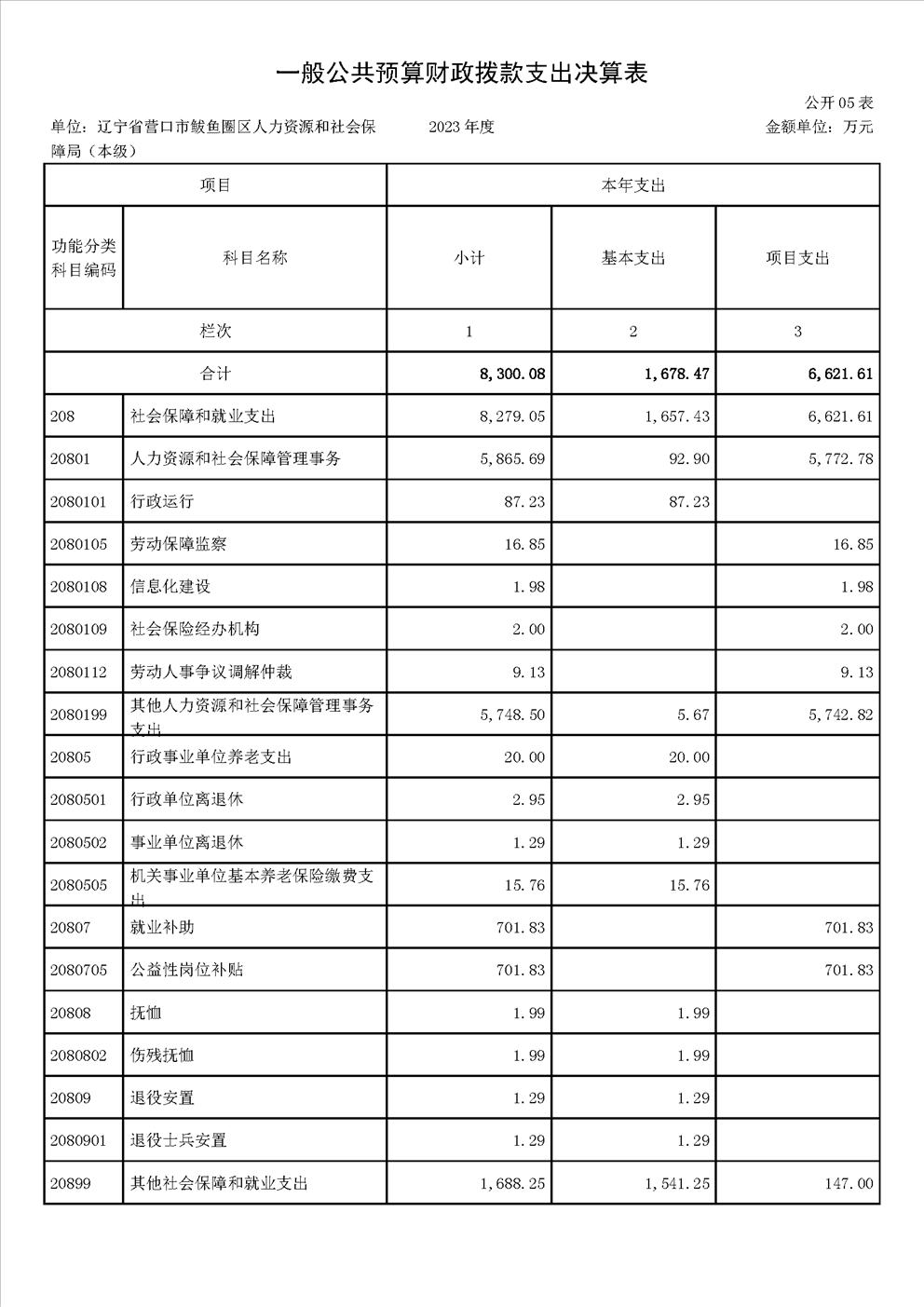 辽宁省营口市鲅鱼圈区人力资源和社会保障局(本级)2023年度部门决算公开