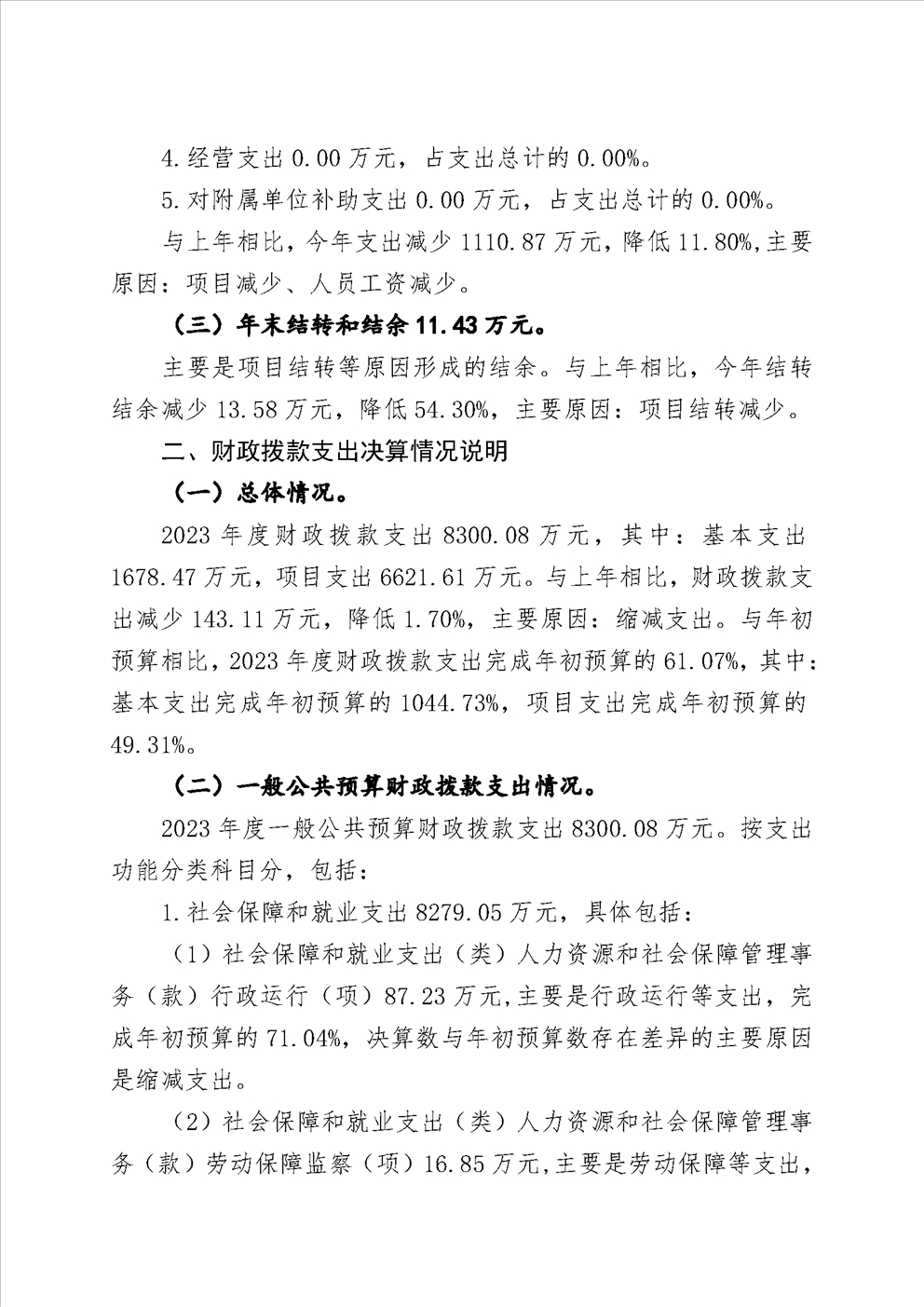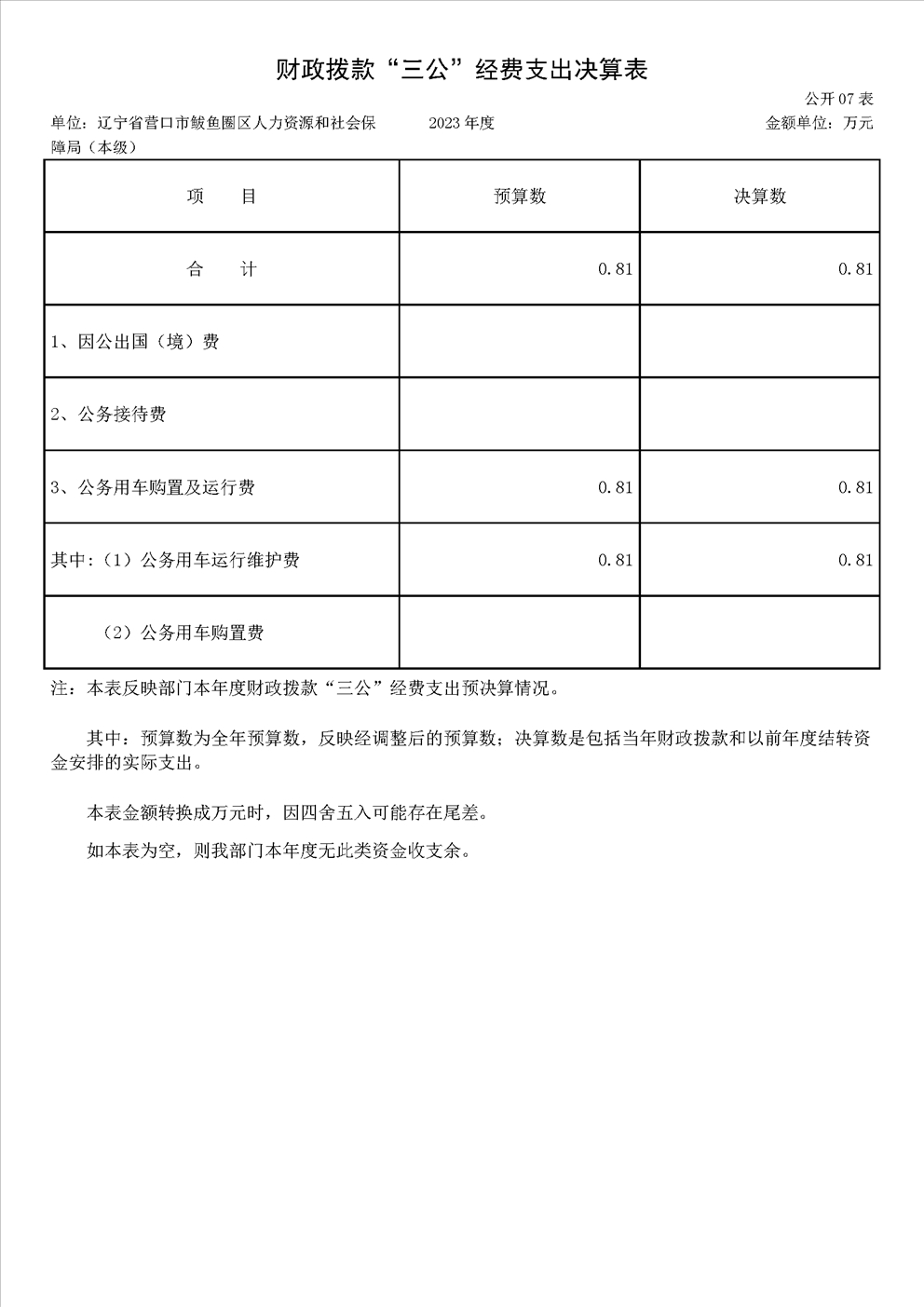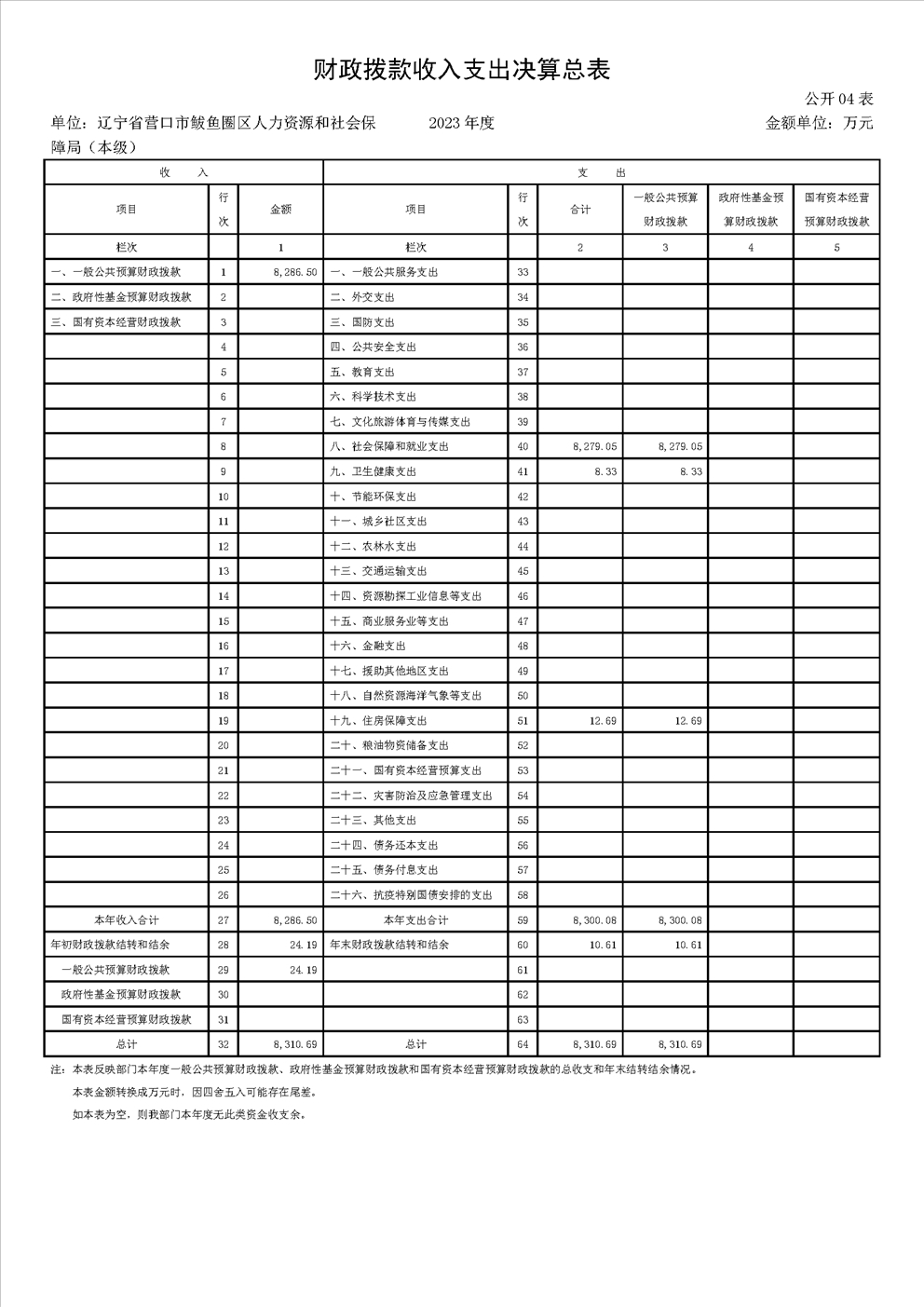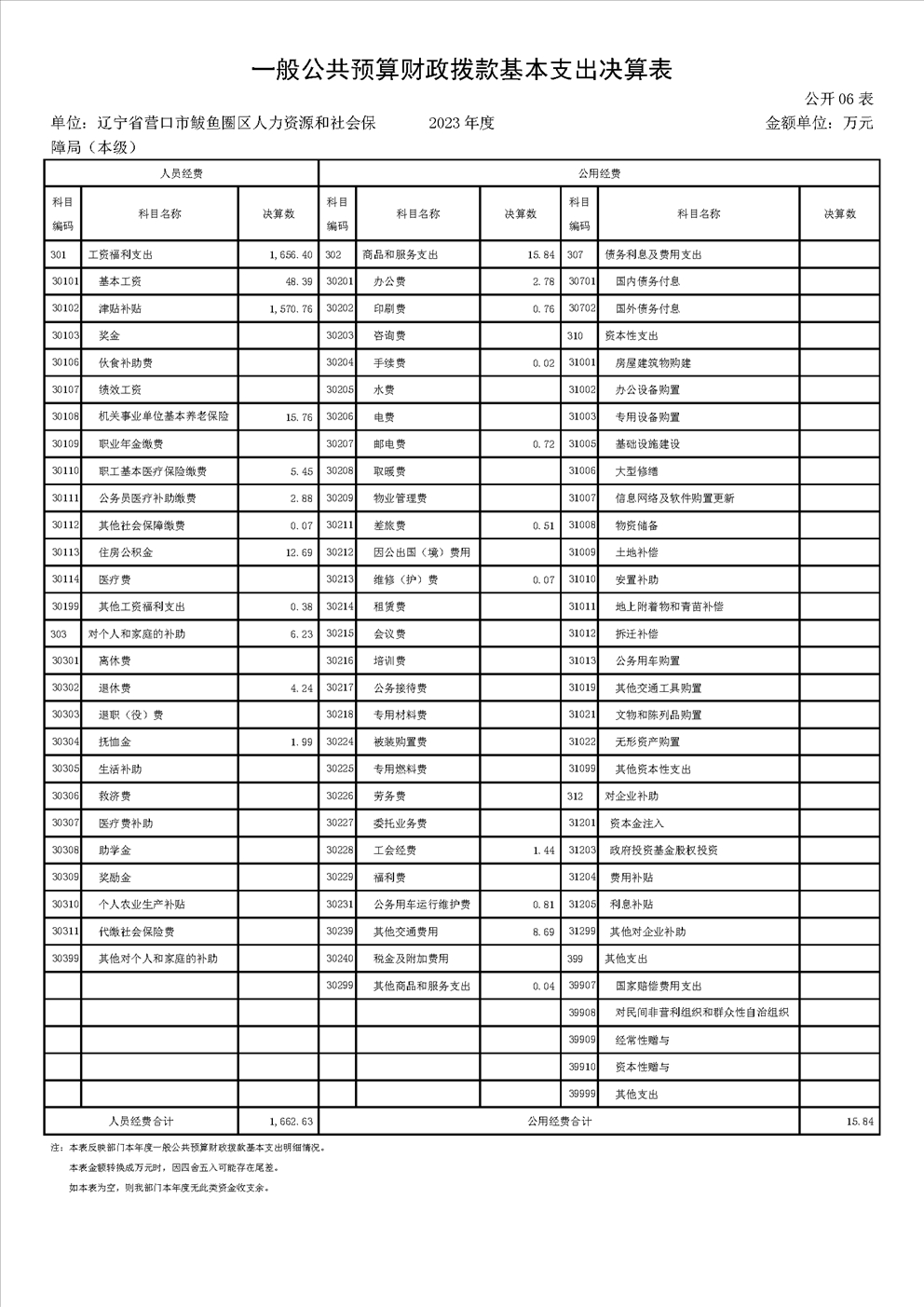 辽宁省营口市鲅鱼圈区人力资源和社会保障局(本级)2023年度部门决算公开