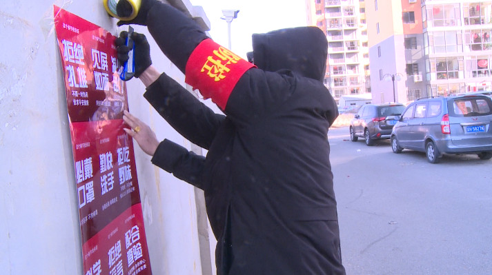 在红旗镇蓝旗社区,工作人员正忙着分发、张贴新的疫情防控手册。红旗镇把排查工作放在首位,采用三级网格联防联控工作机制,分工到人,包片到户,全面排查,立体管控,将宣传、排查、防控融为一体,不断提升群众安全意识。